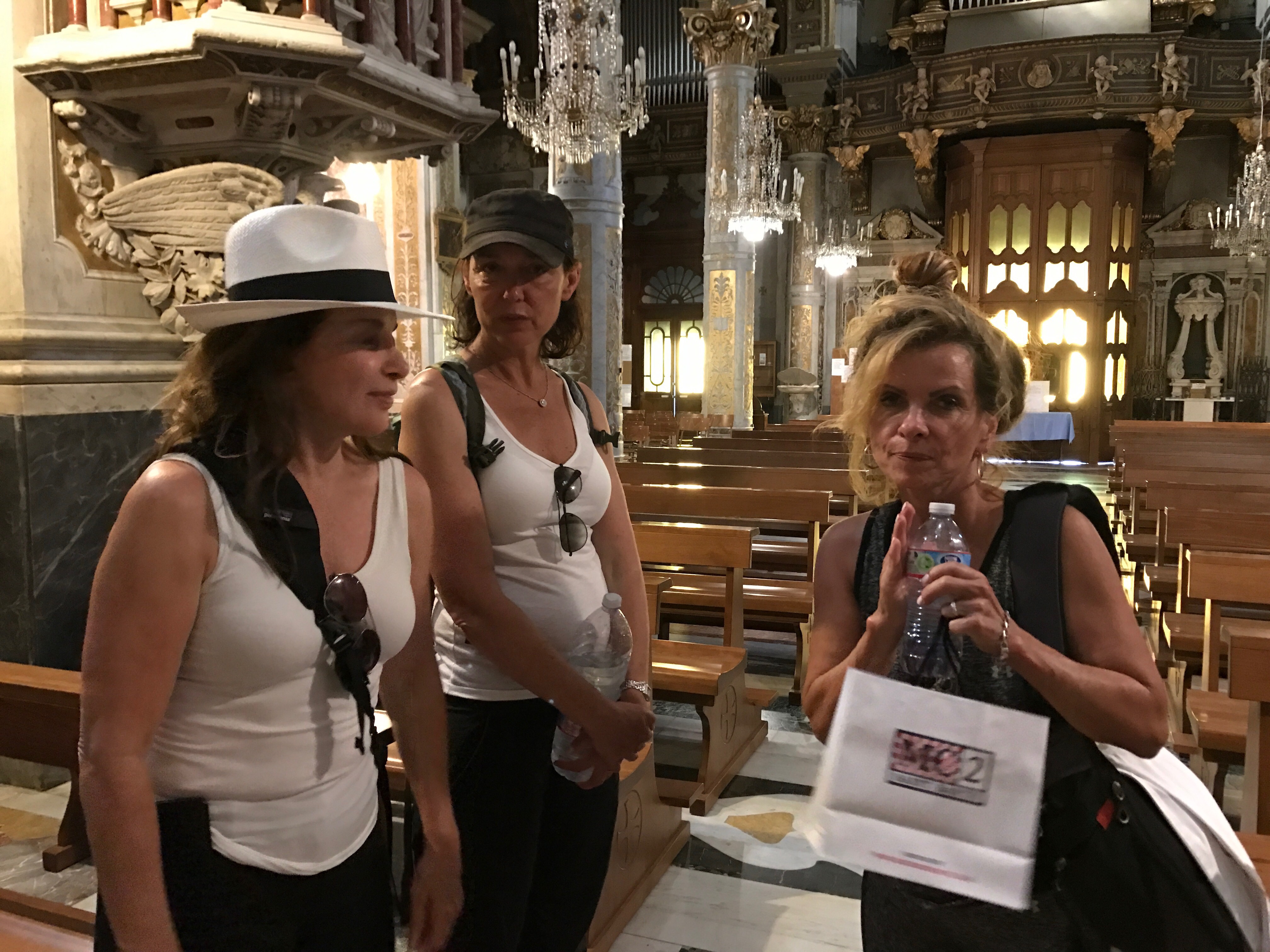 We visited the church of Santa Marguerita  Ligure and I remembered how ornate it was, tons of chandeliers, much colored marble, gold encrusted wood carving- a stunning Catholic Church – but how many people could the church have fed???