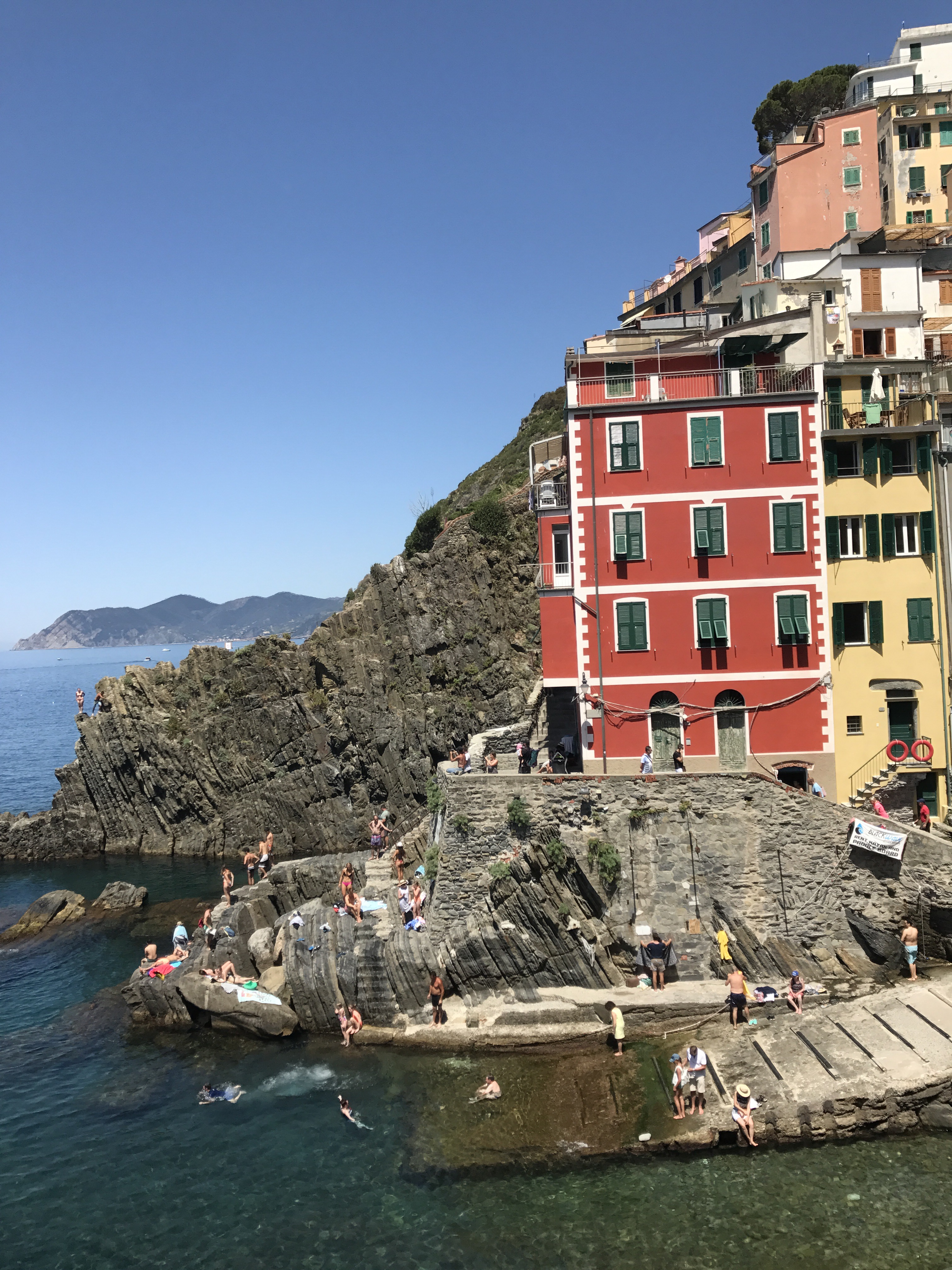 Josh, Wendy,, Kat, Deborah and I take a train in mid morning to the last of the Cinque Terre towns; Riomagiore. Dom and Alix decide to explore on their own as they went to this town yesterday.