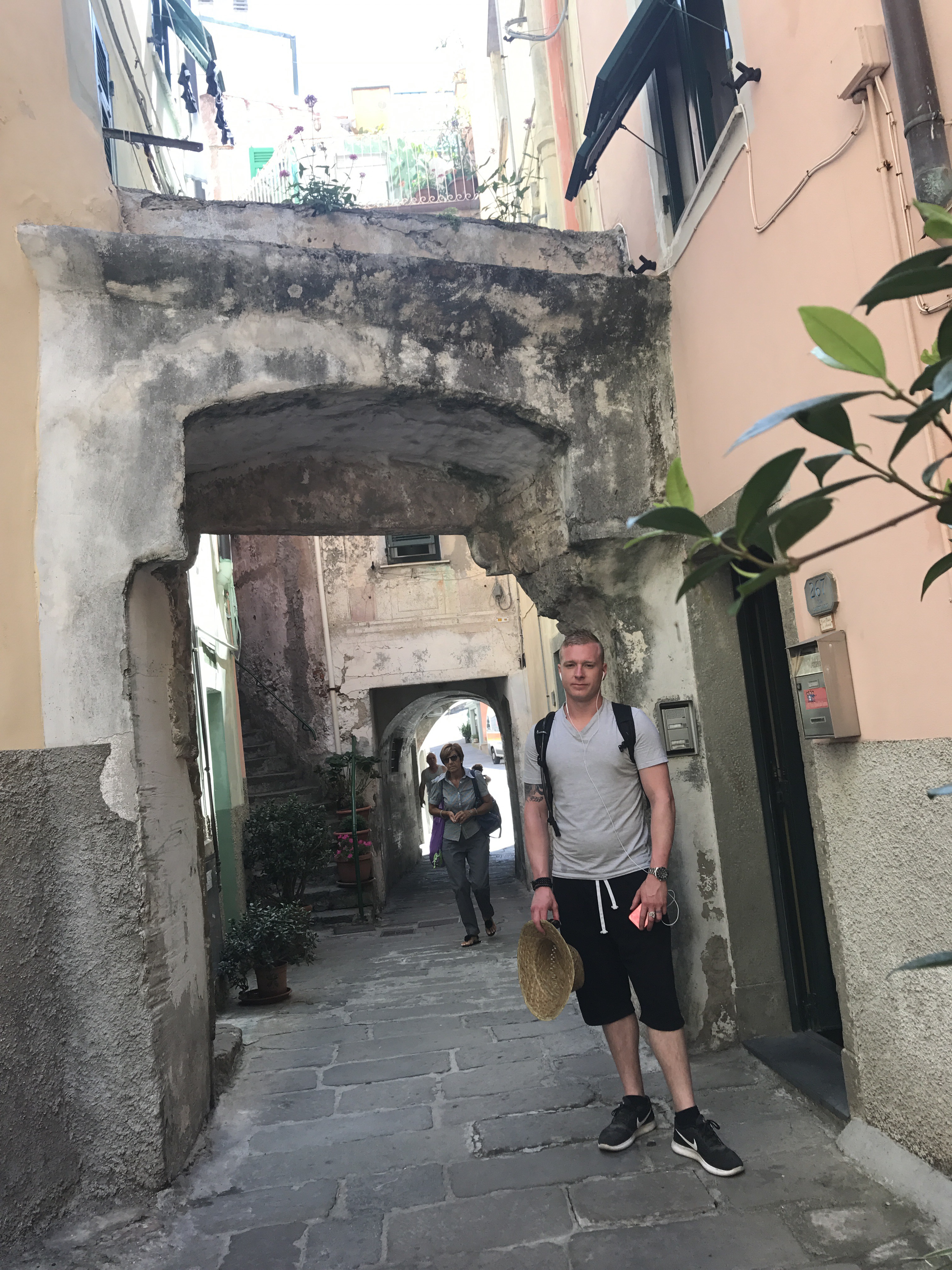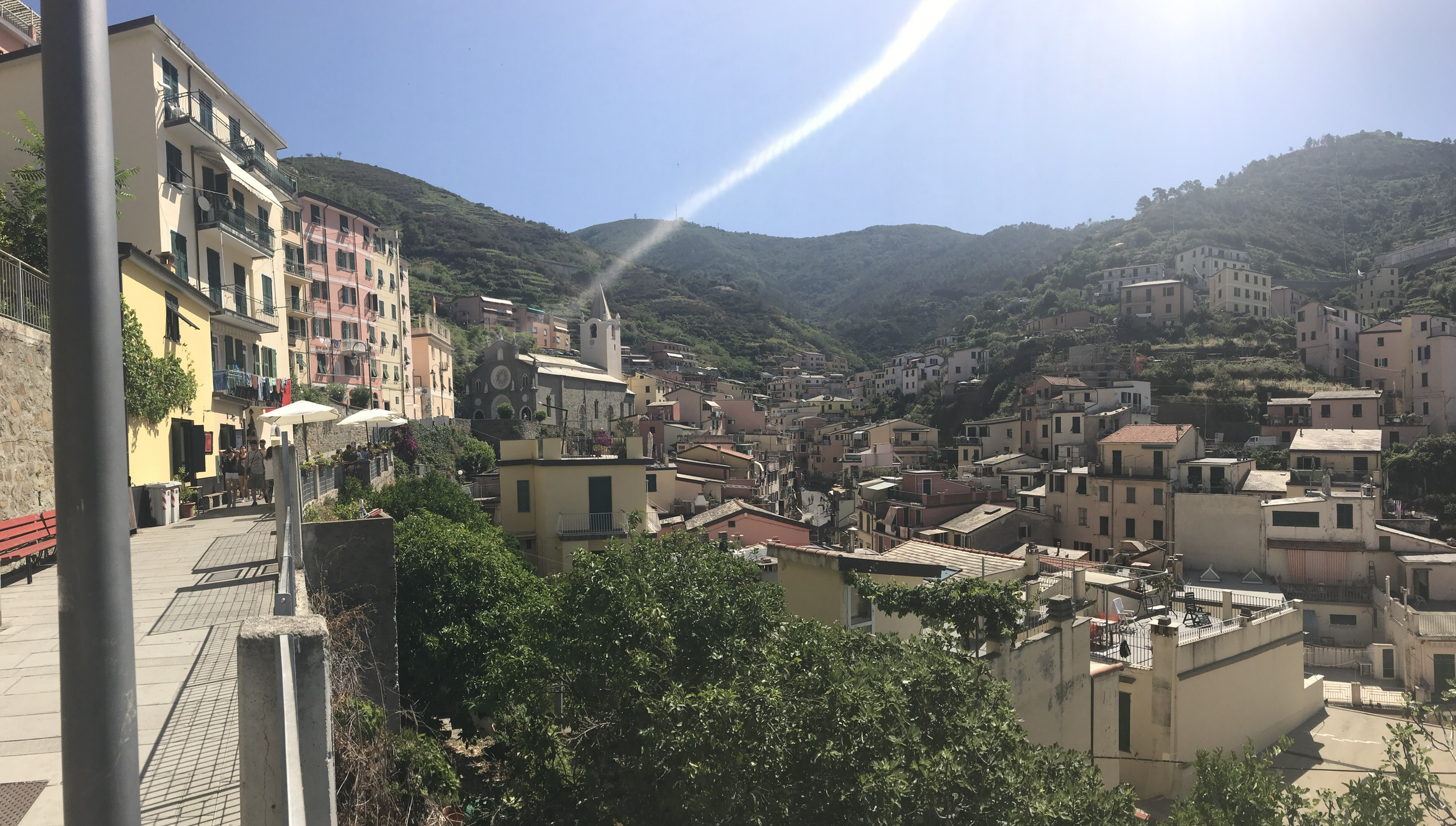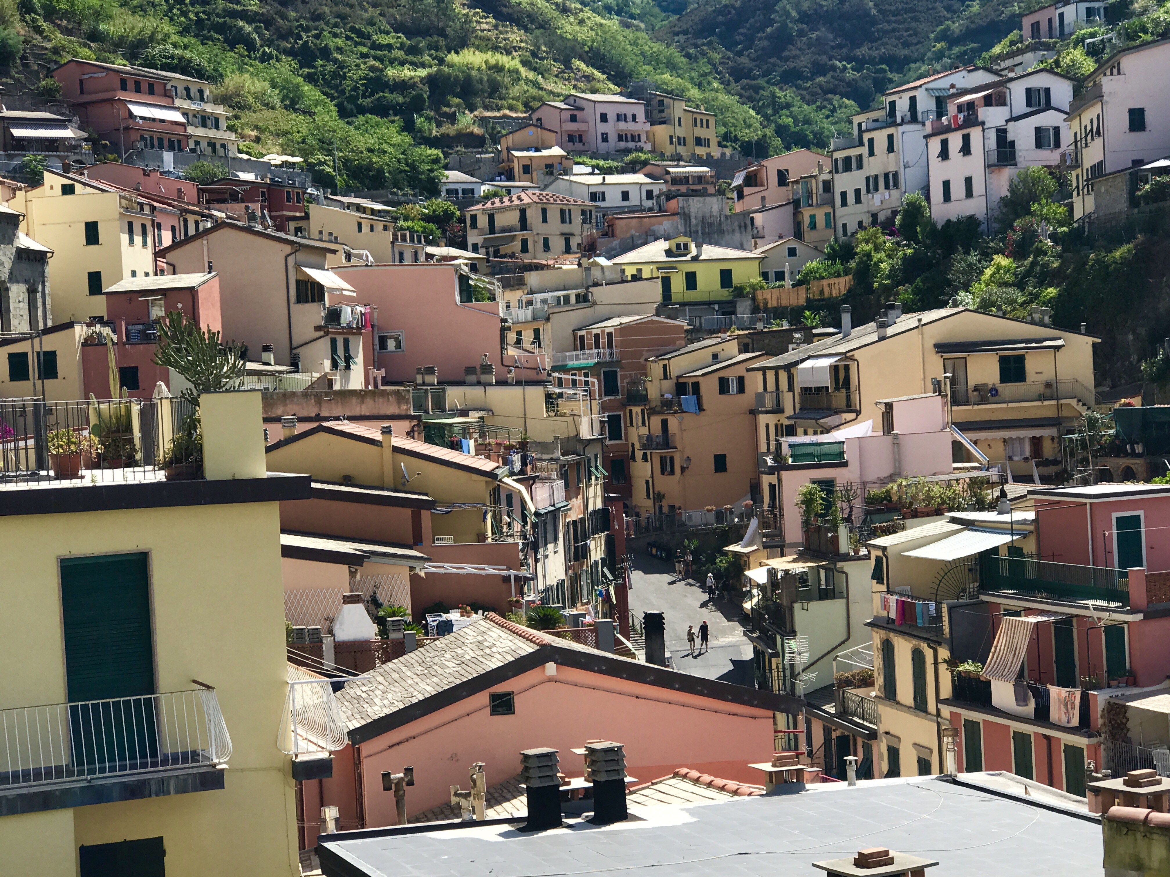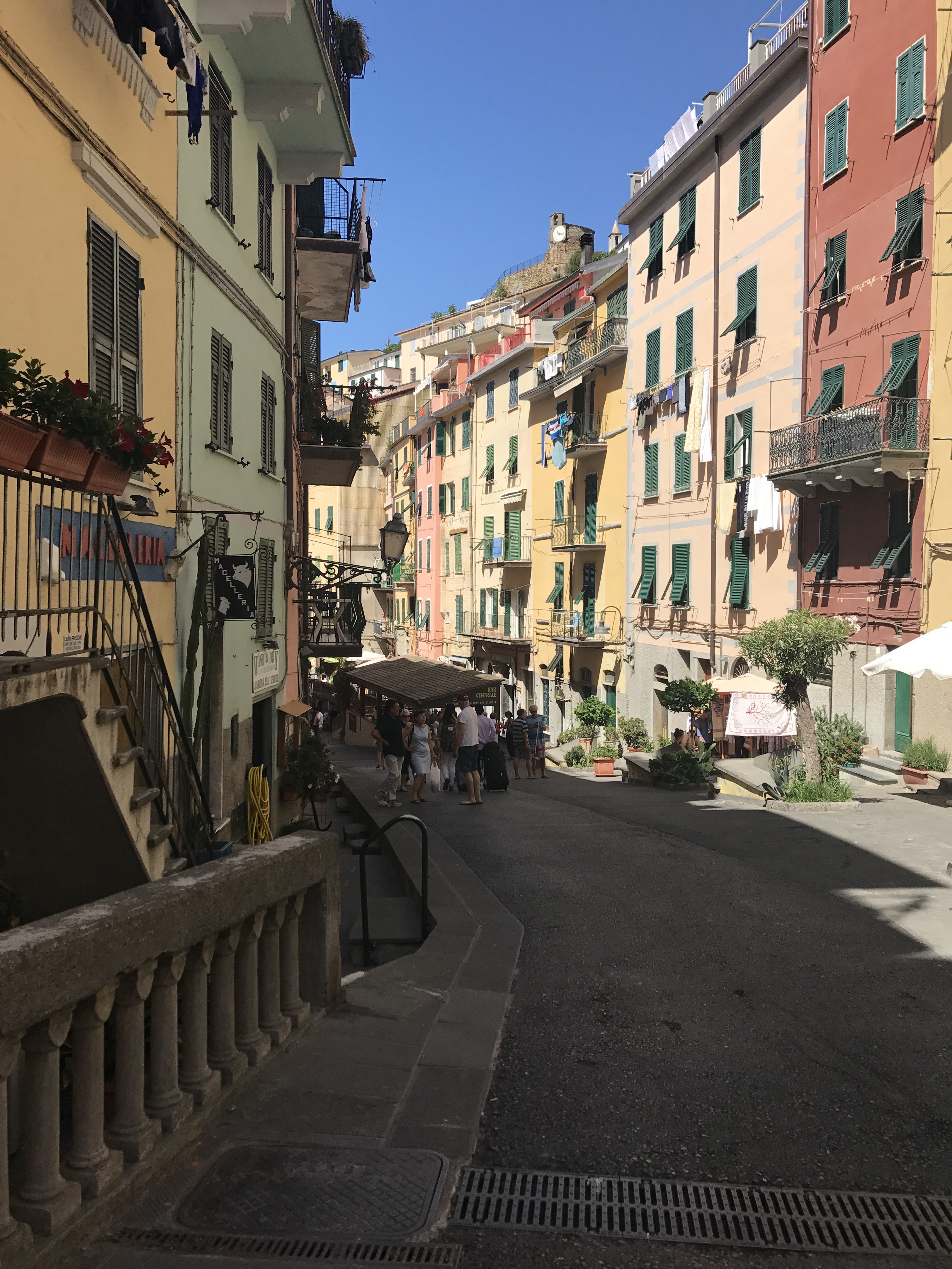 The train station in the last town is sort of at the bottom so we have to hike a good mile to get to the top. This town is extremely colorful as all the other towns.