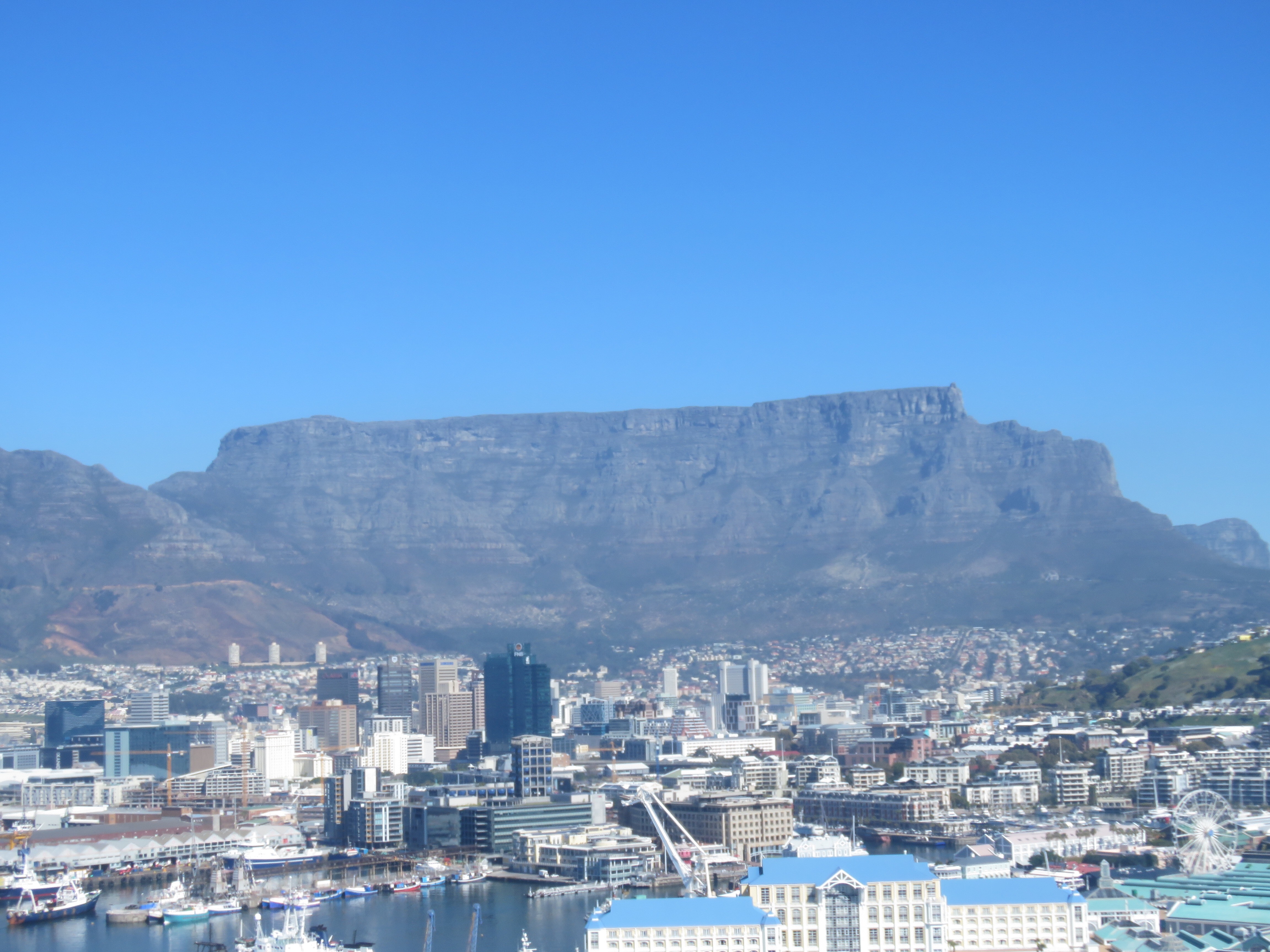recognize Desmond Tutu and Nelson Mandela with a backdrop of the port, our hotel and table mountain.