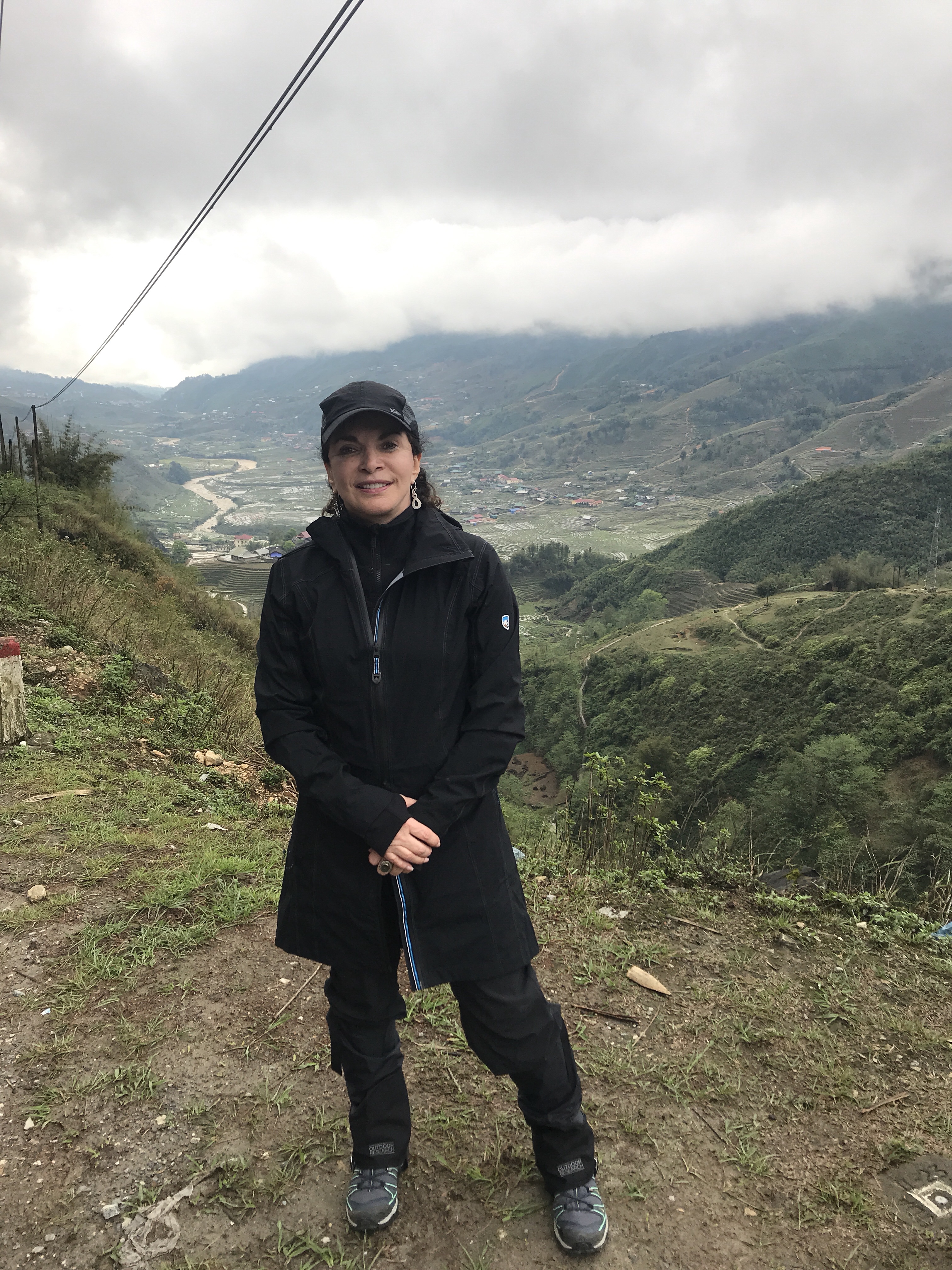 After one hour of driving through windy and narrow roads at high altitude, we arrive in Sapa where we store the majority of our luggages and have a good breakfast before our 8 km treck. It’s pouring, foggy and cool. Everyone carries their backpack of at least 25 Pd’s, I hire a porter…over my dead body I’m carrying this crap!