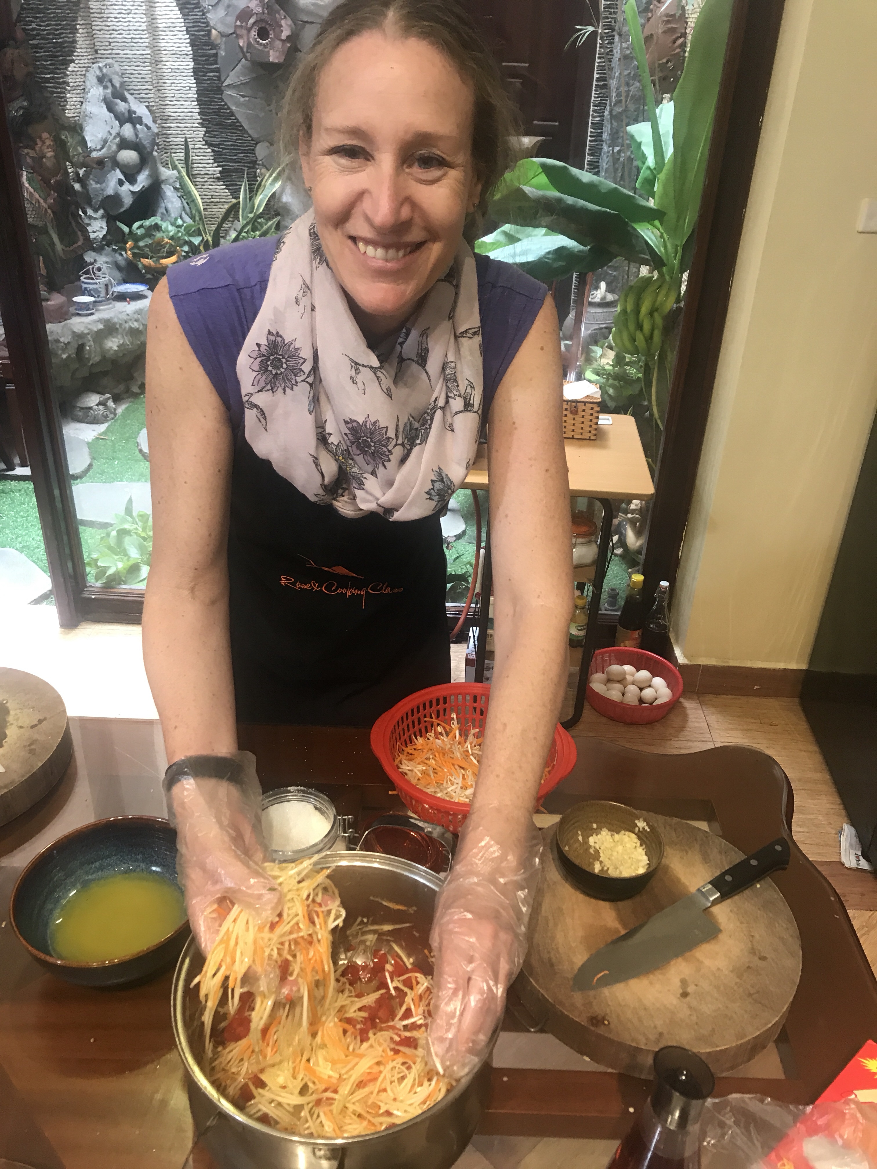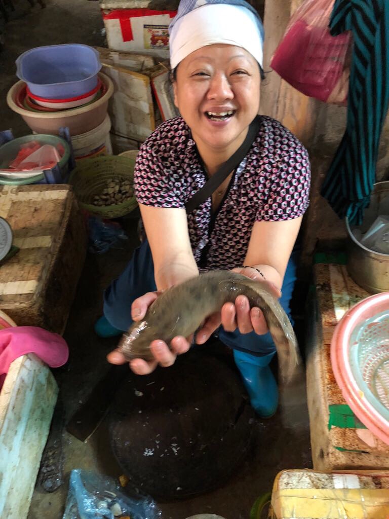 The next morning, Cat and I signed up for a private cooking class at one of the best cooking school in Hanoi – Rose kitchen- this is our chef! Lynh. We will buy all our food fresh from their local market
