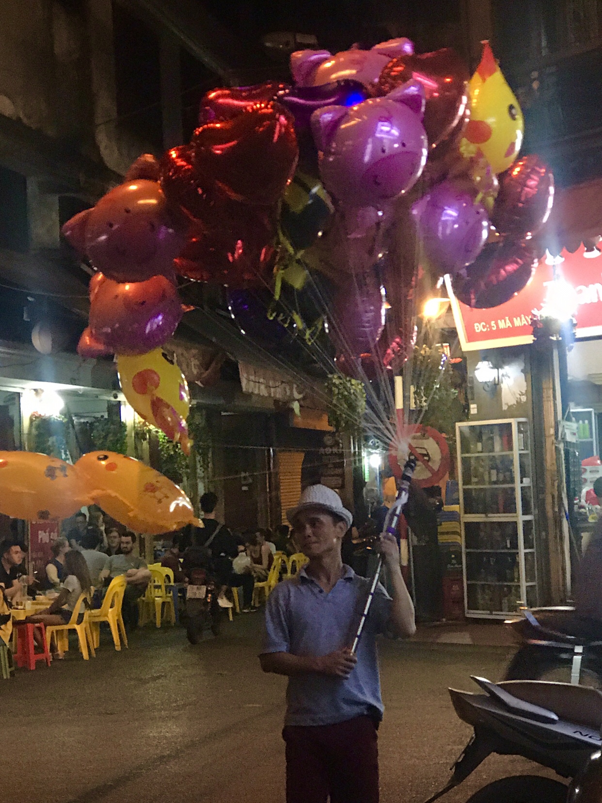 I love to sit at the bar right across from the hotel and watch all the peddlers passing by, the diners sitting in tiny tiny plastic chairs, the hundreds of scooters flying by either carrying a family, lovers or workers with their tools.