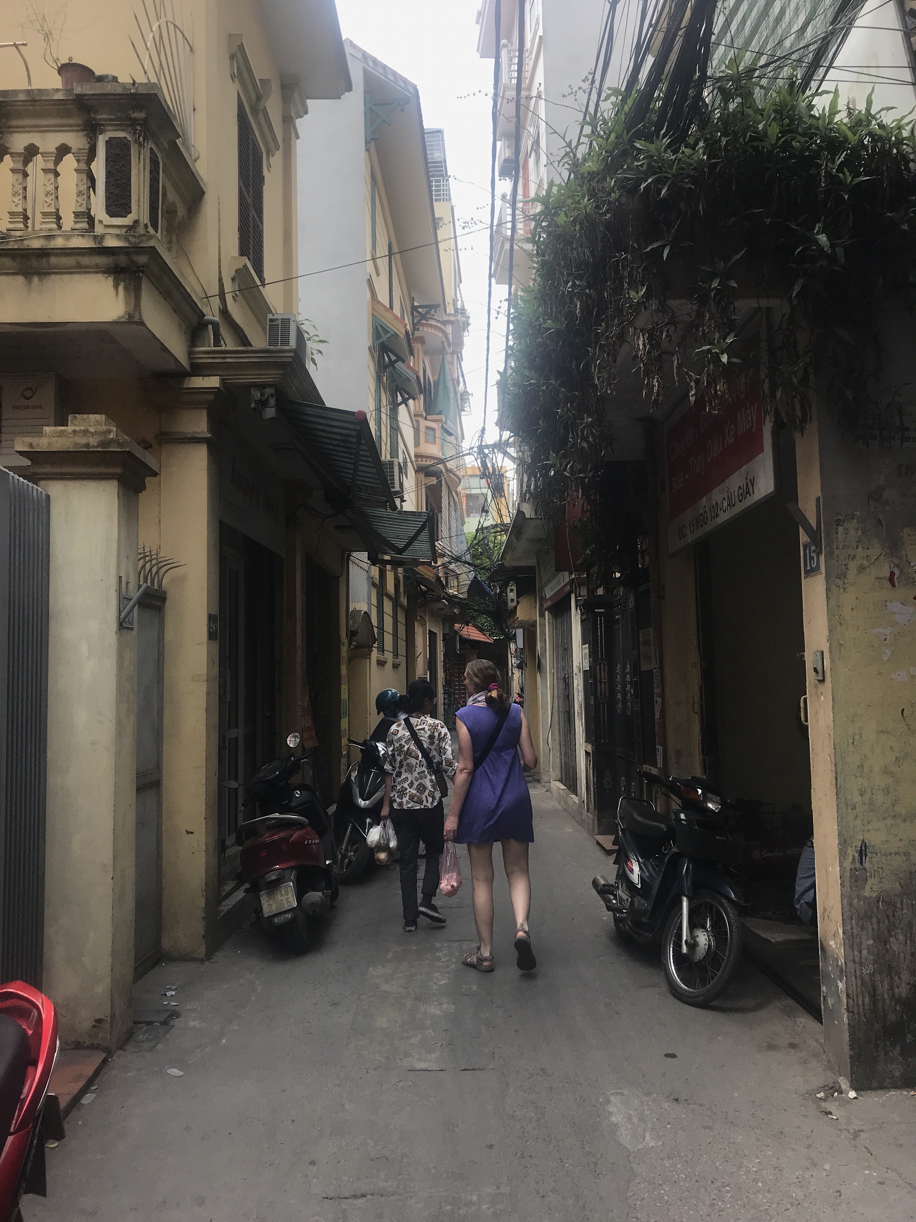 walking the street of residential Hanoi to our cooking class. The houses are actually spacious in this area