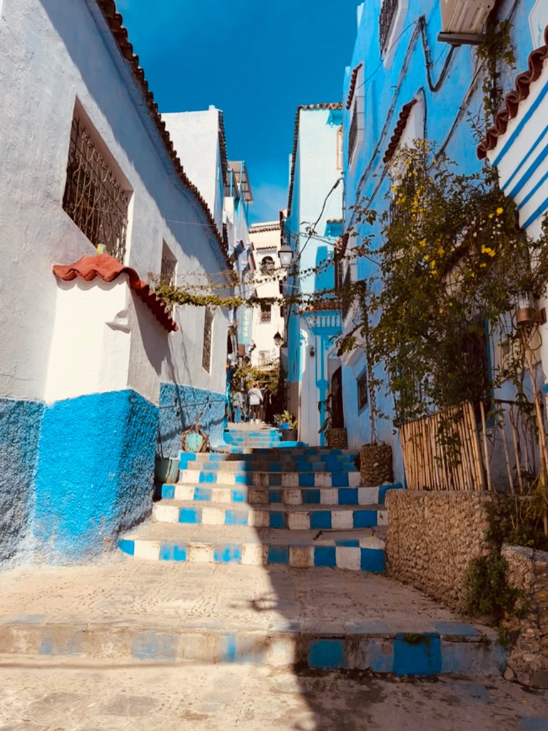 The maze like Blue city is located high in the mountains where all the houses are painted various shades of blue. The move of painting the houses blue and white is rumored to have started by Jewish immigrants in the 1930’s. The blue and white has a religious significance where it signifies the color of the sky and connect the city to heaven. We watched the sunset from the top of the hill at the Spanish mosque.