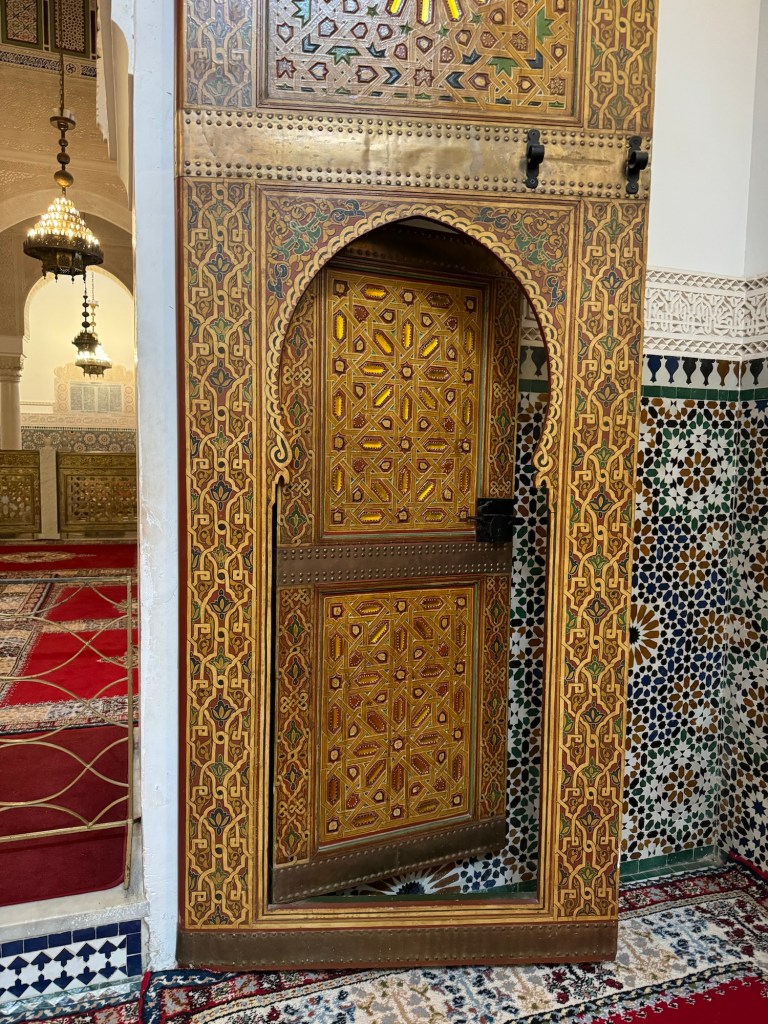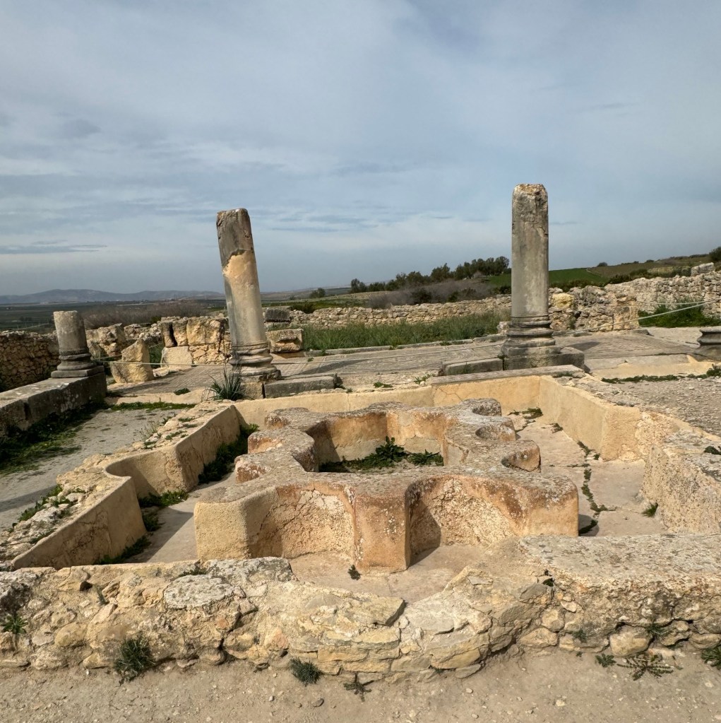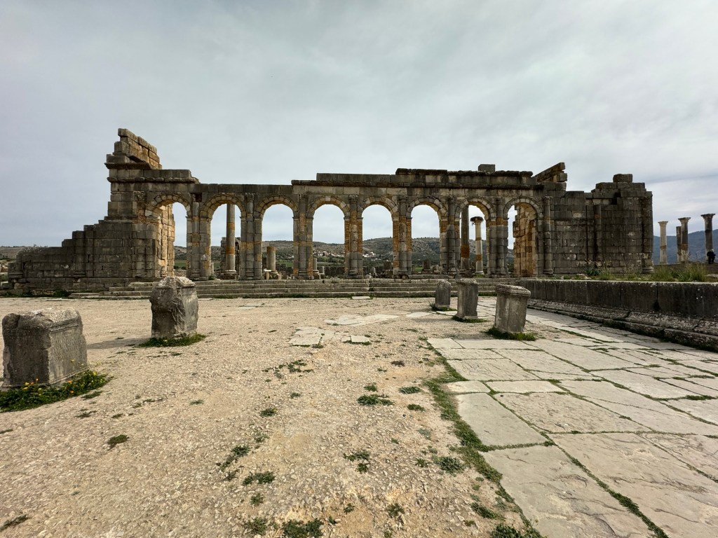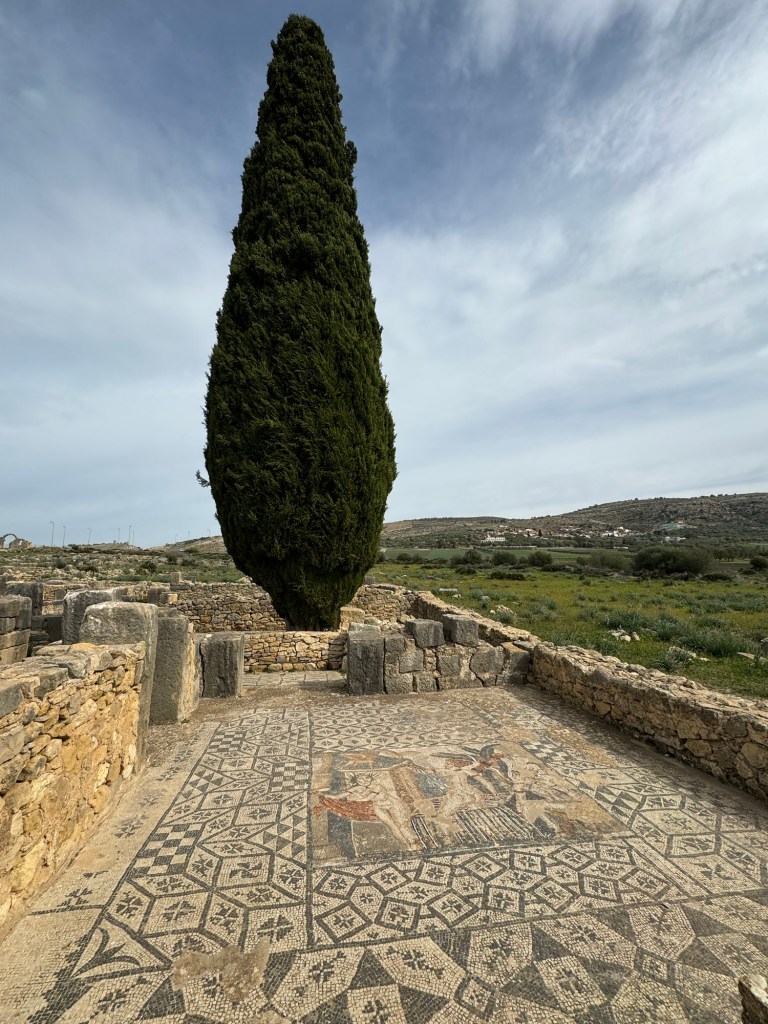 On a windy and cold day we had the privilege of being shown the ancient city of Volubilus, an archeological site dating back to the 3rd Century BC. It was a thriving agricultural area. It was abandoned in the 7th century. It is the remains ( after being devastated by an earthquake in the mid 18th century) of an ancient Roman city where we still see pillars, arches, thermes, fairly well preserved mosaïques. Then we spend the night in Meknes in Riad Ritaj- ( very basic Riad but great service) and visited the mausoleum of Sultan Moulay Ismael and the Dar Jamai museum filled with antique music instruments. This museum was actually a palace for the Jamai family. It was cold and rainy.