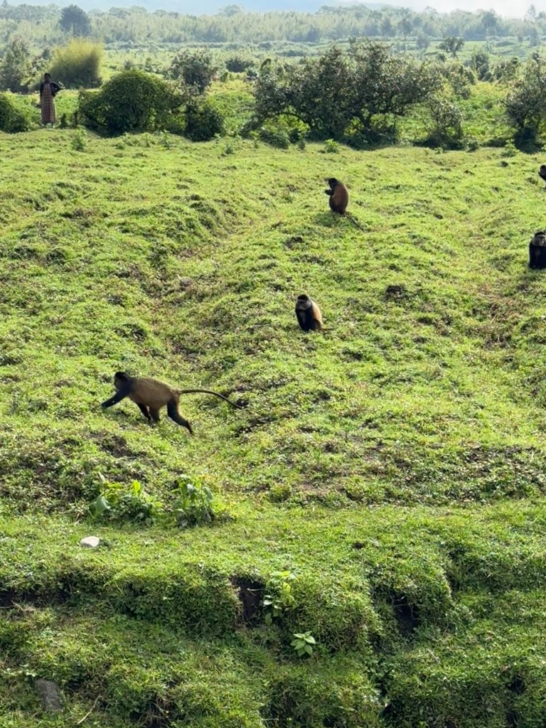 Rwanda is a surprise, An amazing country with a lush, verdant, mountainous topography. We have encountered the kindest people. We’ re staying in a 5 star lodge , the Bishop House, with the most exemplary service. Most of all, we are here to experienced the gorilla trek in the Volcanos national Park . We saw golden monkeys, trekked through muddy knee deep pot holes that we slogged to get to the Hirwa gorilla tribe lead by one silver back gorilla of 19 years old and his tribe of 17 gorillas with one 5 month old baby.