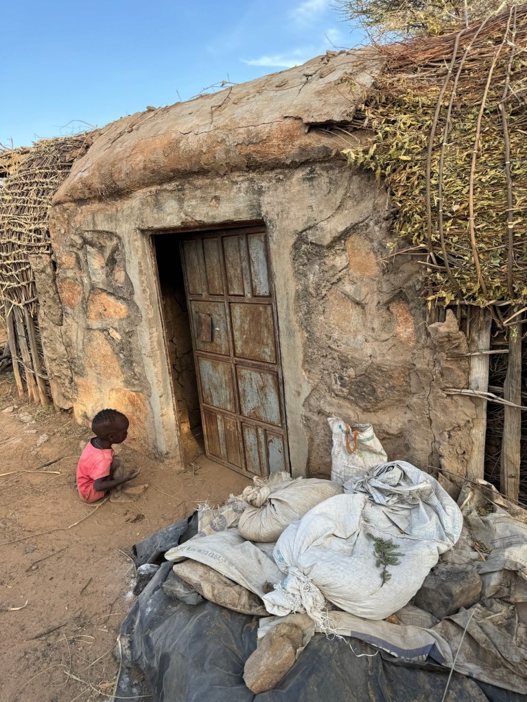 These women formed their own camp.By supporting themselves making jewelry and by donations, which they badly need. They escaped rape, arranged forced marriages and lots of violence. They always face danger and are in dire need of donations. They received us by singing and dancing and they invited me to join them in their dance. The children and the women were delightful. They built their own houses with mud, bamboo and straw, they sleep on animal skin thrown on the dirt floor. They also cook on the floor.